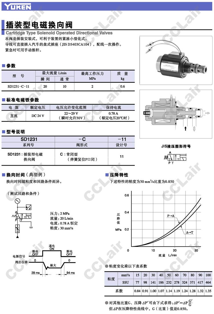 SD1231-C-11,插裝型電磁換向閥,YUCIYUKEN榆次油研