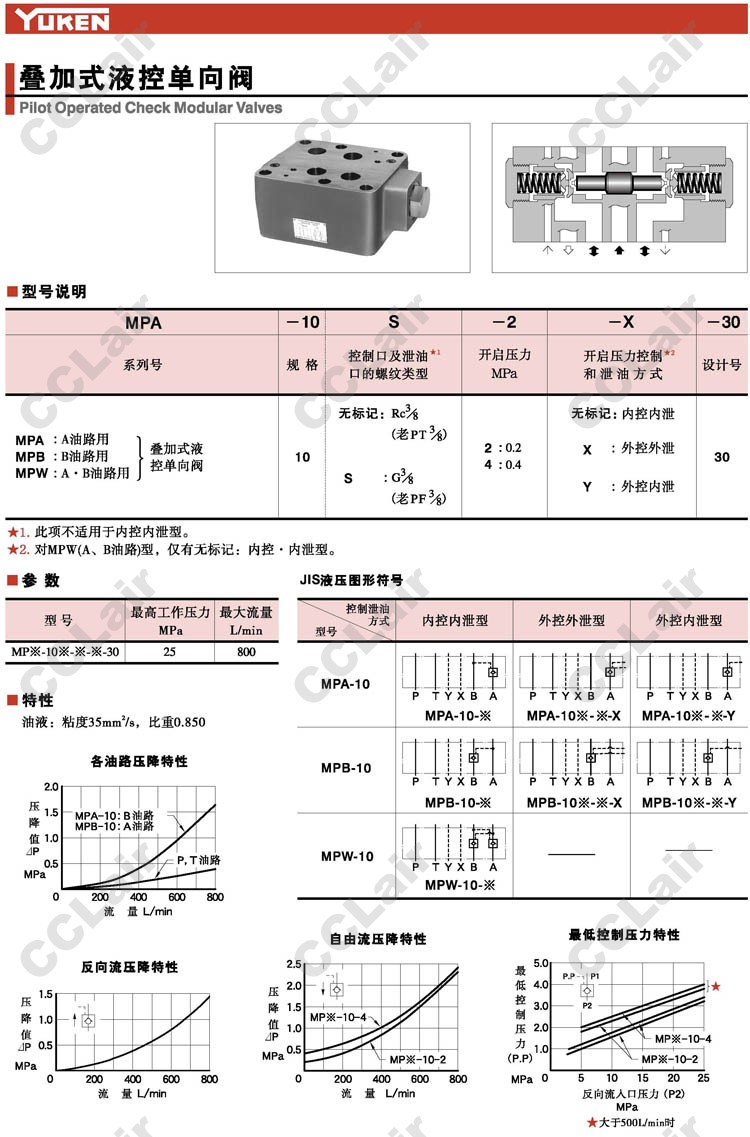 MPA-10,MPB-10,MPW-10,MPA-10-S-2-X-30,MPW-10-S-2-30,YUKEN,疊加式液控單向閥