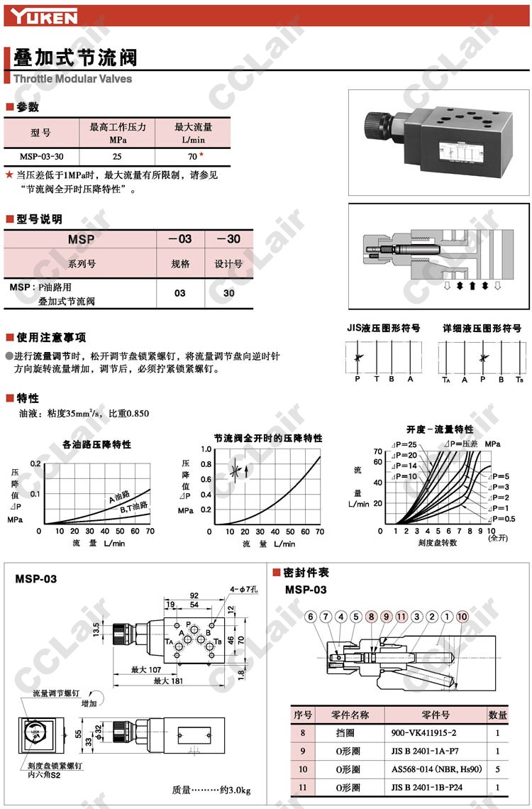 MSP-03-30,疊加式節(jié)流閥,YUCIYUKEN榆次油研