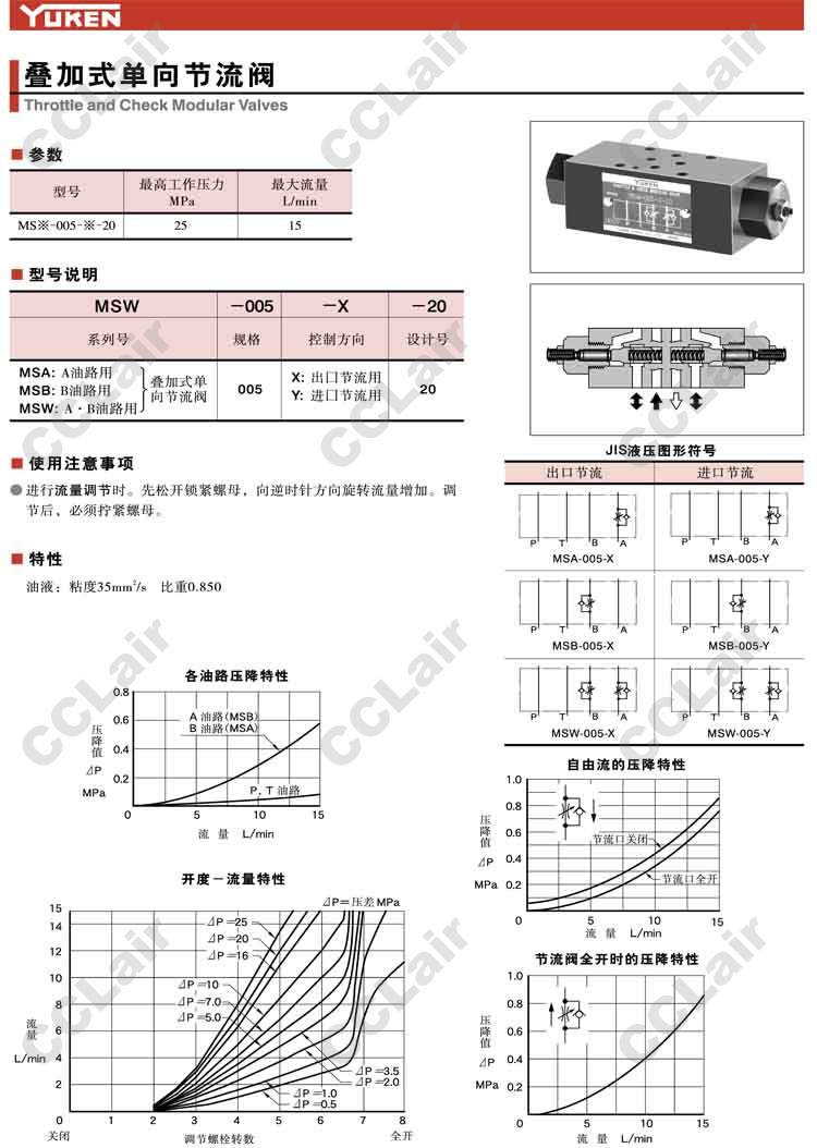 MSW-005-X-20,MSW-005-Y-20,MSA-005-X-20,MSA-005-Y-20,MSB-005-X-20,MSB-005-Y-20,疊加式單向節(jié)流閥,YUCIYUKEN榆次油研