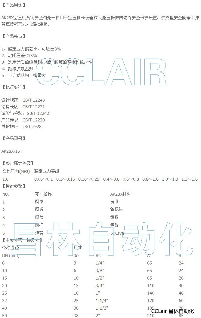詳細(xì)信息 AK28X-16-DN6,AK28X-16T-DN6,AK28X-16-DN10,AK28X-16T-DN10,空壓機(jī)黃銅安全閥