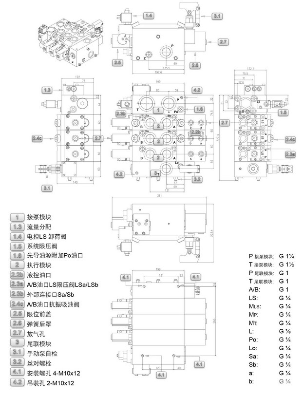 P油口(測面進(jìn)油) 300 l/min; P油口(中路進(jìn)油) 300 l/min