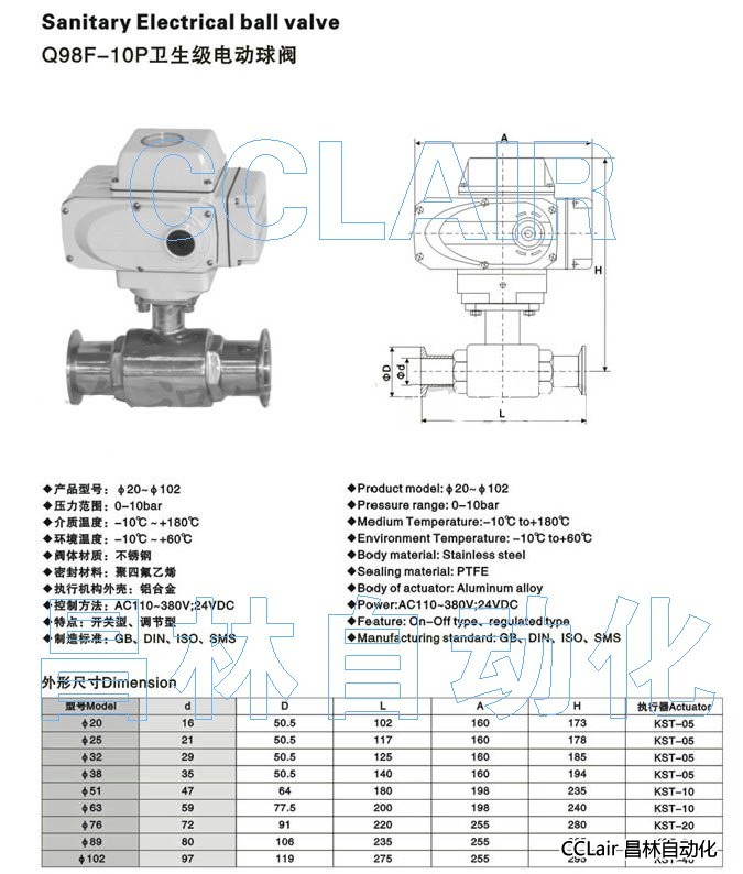 » Q98F-10P,衛(wèi)生級電動球閥