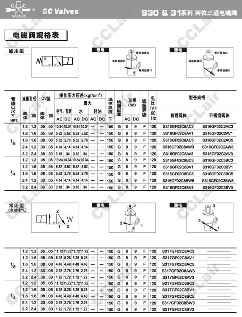 S313GF02C2AC5,S313GF02C2AW3,S313GF02C2AV3,GC Valves S313GF02C2BC3,S313GF02C2BV1,S313GF02C2BC5,