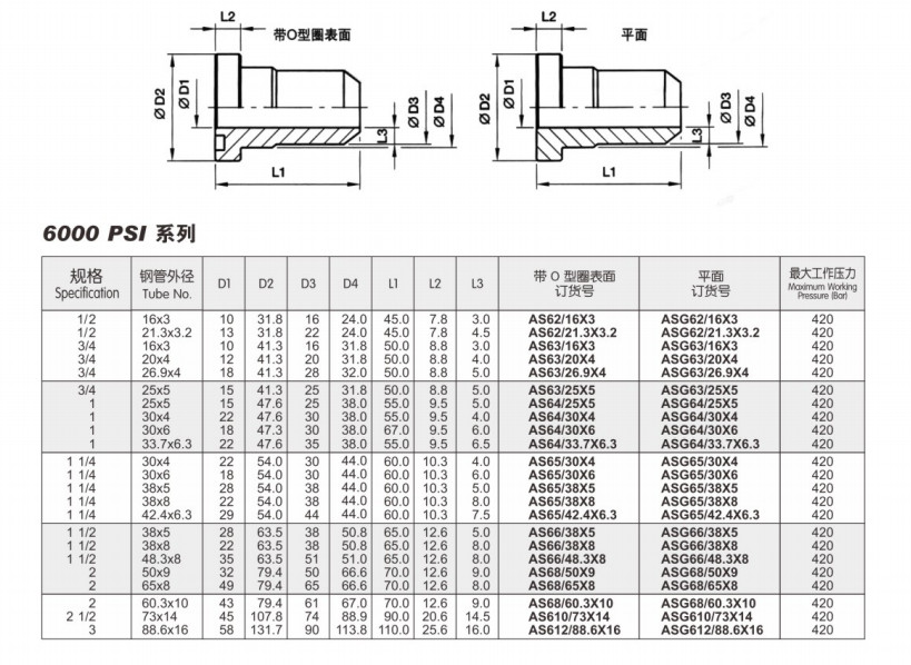 ASG68/50X9,ASG68/65X8,ASG68/60.3X10,ASG610/73X14,ASG612/88.6X16,