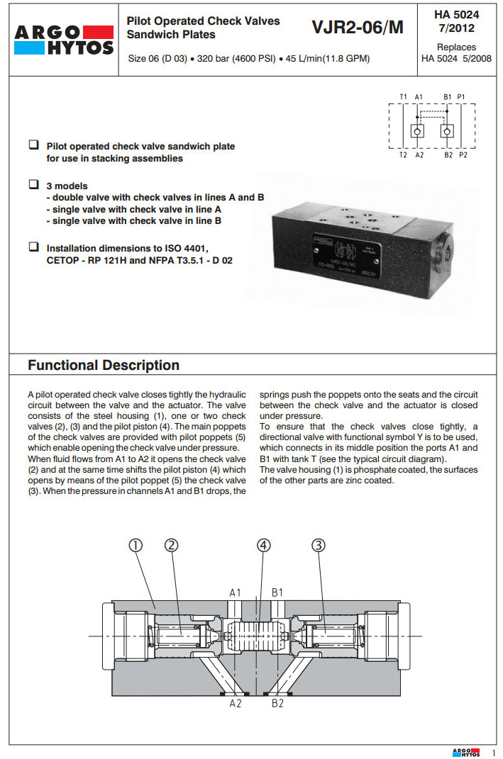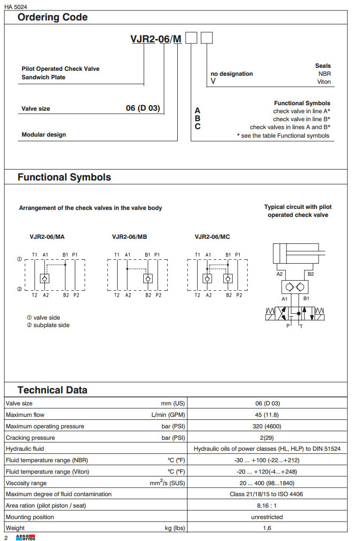 VJR2-06/MA,VJR2-06/MB,VJR2-06/MC,ARGO液控單向閥