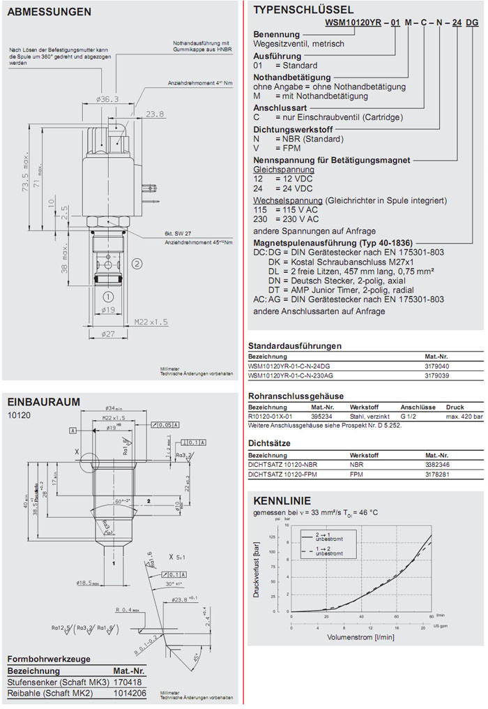 WSM10120YR-01-C-N-24DG,WSM10120YR-01-C-N-230AG,HYDAC電磁2/2方向座閥