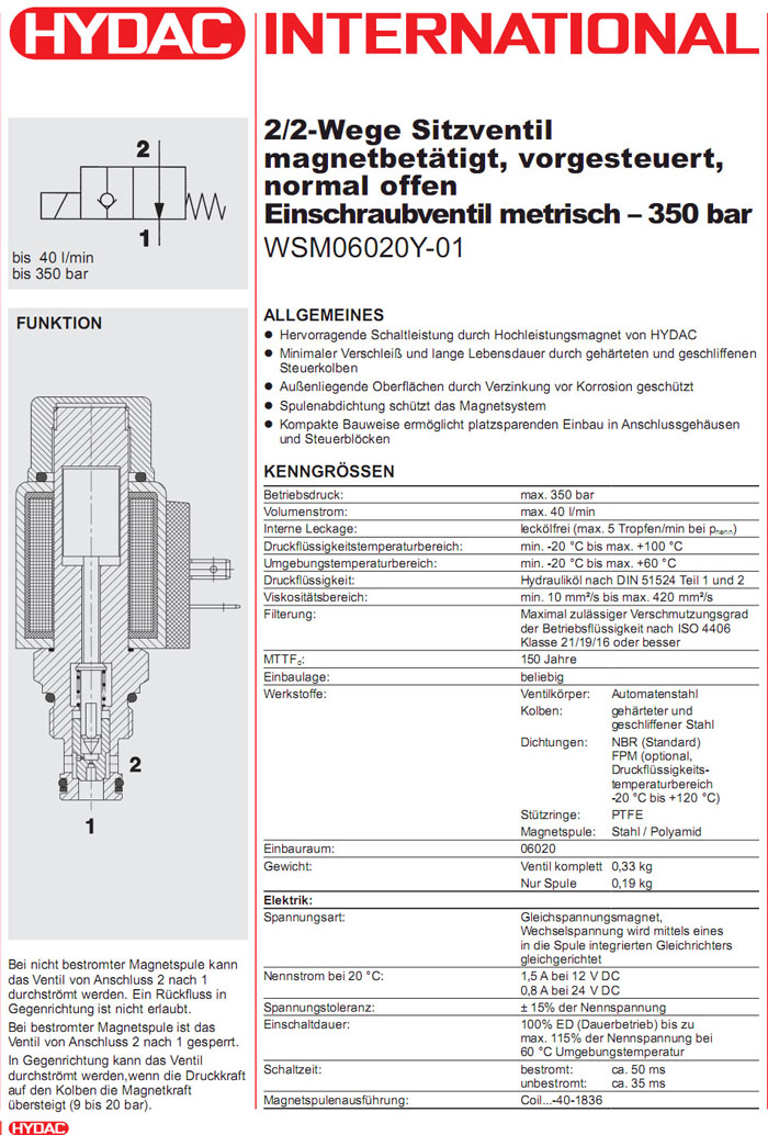 WSM06020Y-01-C-N-24DG,WSM06020Y-01-C-N-230AG,HYDAC電磁2/2方向座閥