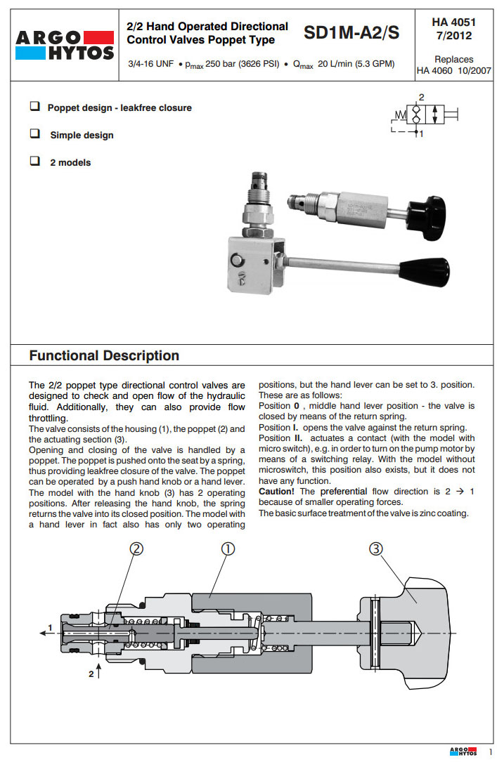 SD1M-A2/SL1,D1M-A2/SL2,D1M-A2/SL3,ARGO手動方向控制閥