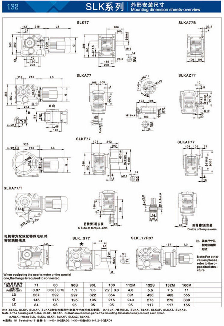 SLK47,SLKA57,SLKF67,SLKA77B,SLK87,SLKA97,SLKA107B,SLK127,SLKF157,SLK167,螺旋錐齒輪減速機 |