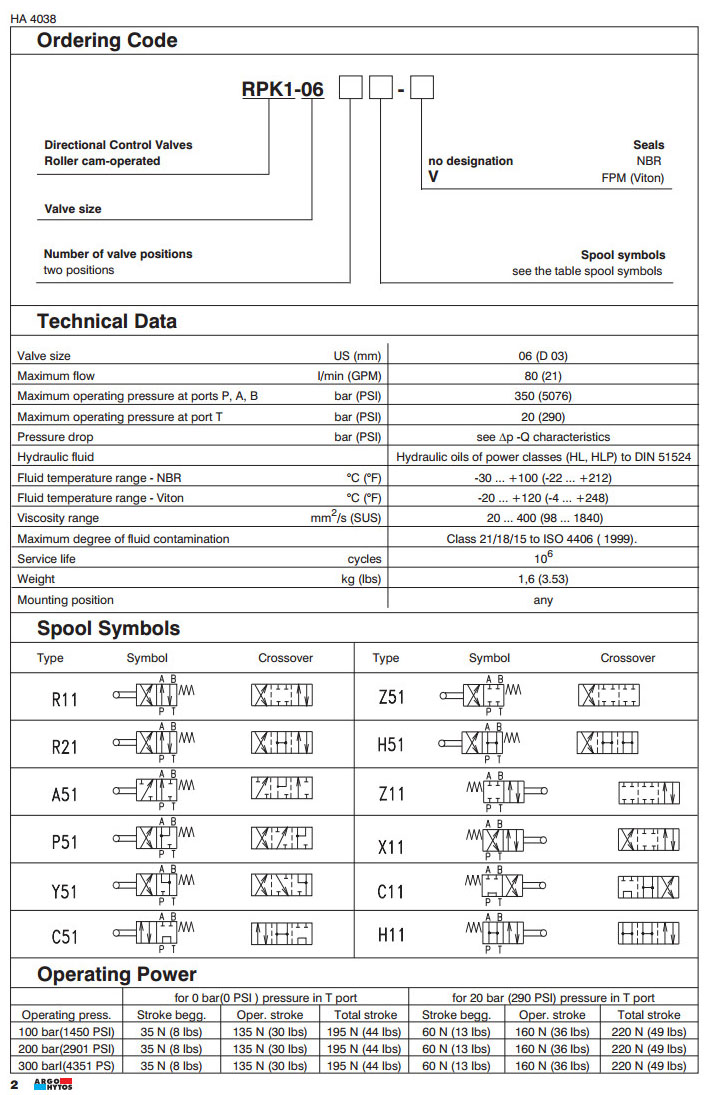 RPK1-06,ARGO手動方向控制閥