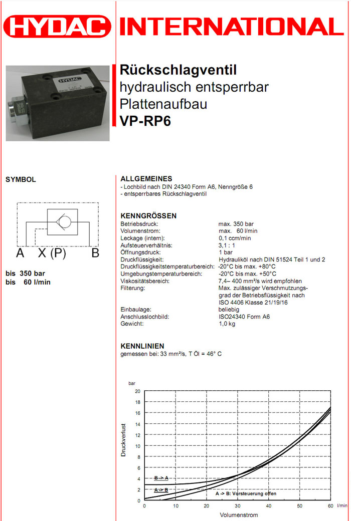 VP-RP6 15 S01/N,HYDAC止回閥