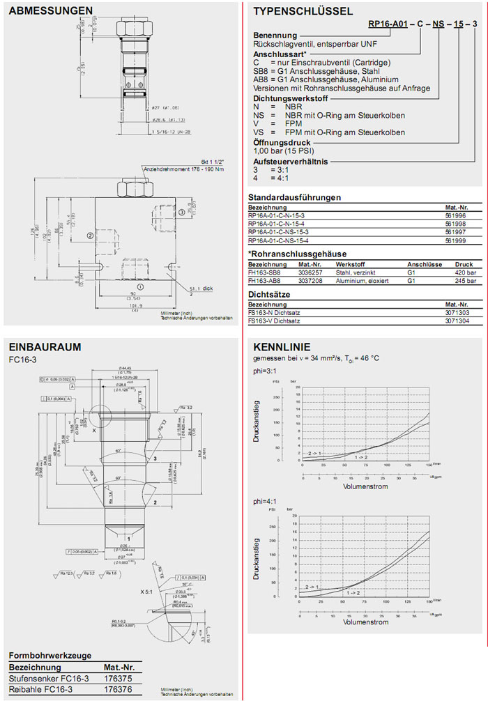 RP16A-01-C-N-15-3,RP16A-01-C-N-15-4,RP16A-01-C-NS-15-3,RP16A-01-C-NS-15-4,HYDAC止回閥
