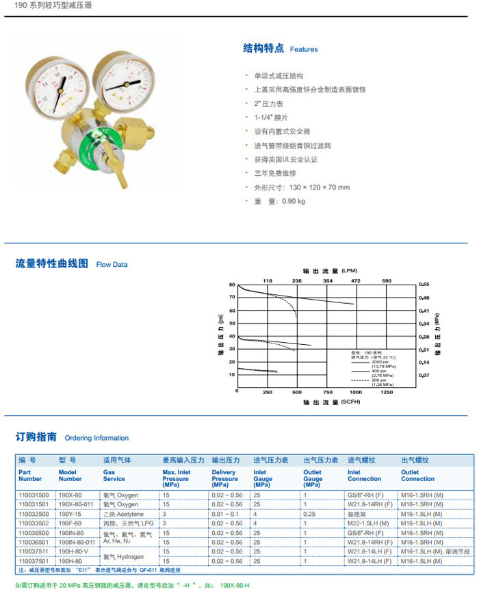 190X-80,190X-80-011,190Y-15,190F-80,190IN-80,190IN-80-011,190H-80-V,190H-80,輕巧型減壓器
