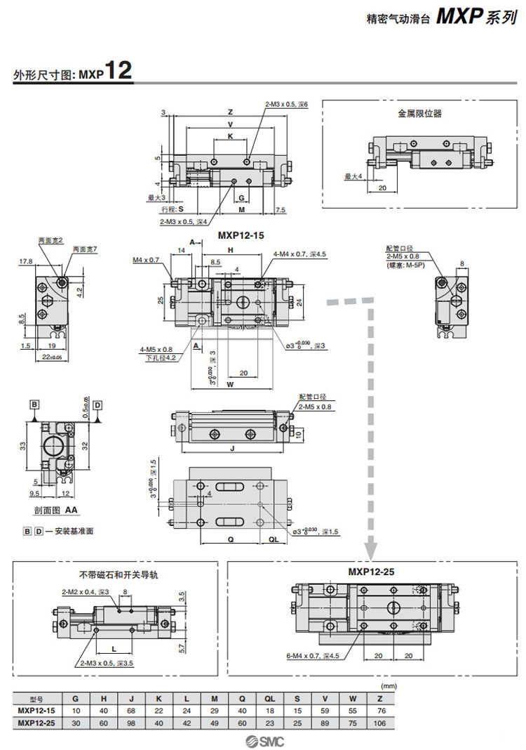 MXP6-5,MXP8-10,MXP10-10,MXP12-15,MXP16-20,MXPJ6-5,MXP6-10,MXP8-20,SMC精密氣動(dòng)滑臺(tái)氣缸