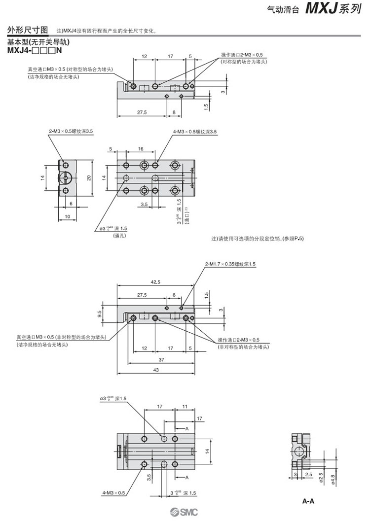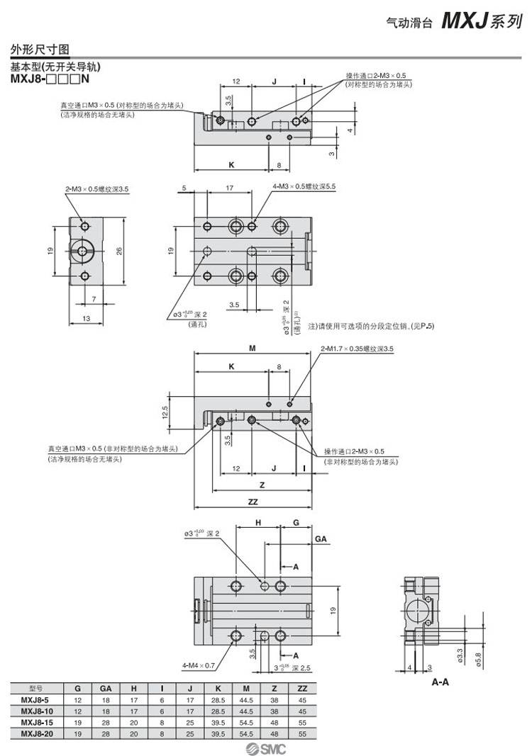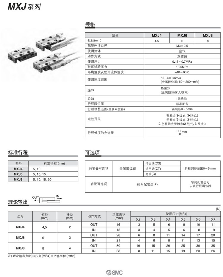 MXJ4-5,MXJ4-10,MXJ6-5,MXJ6-10,MXJ6-15,MXJ8-5,MXJ8-10,MXJ8-15,MXJ8-20,SMC氣動(dòng)滑臺(tái)氣缸
