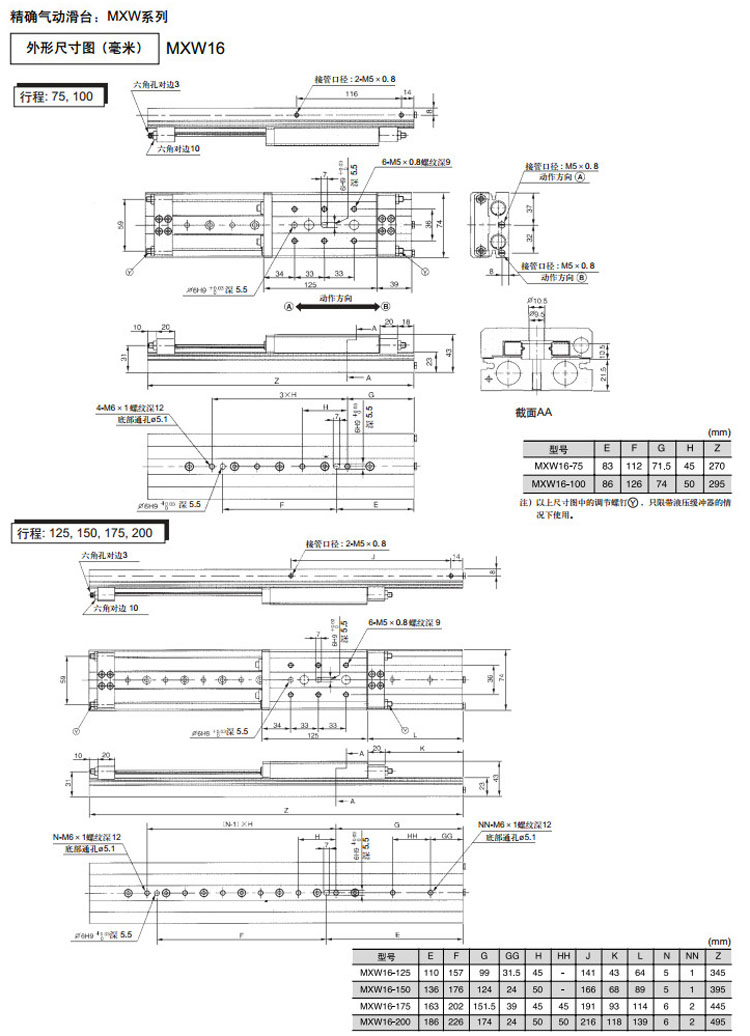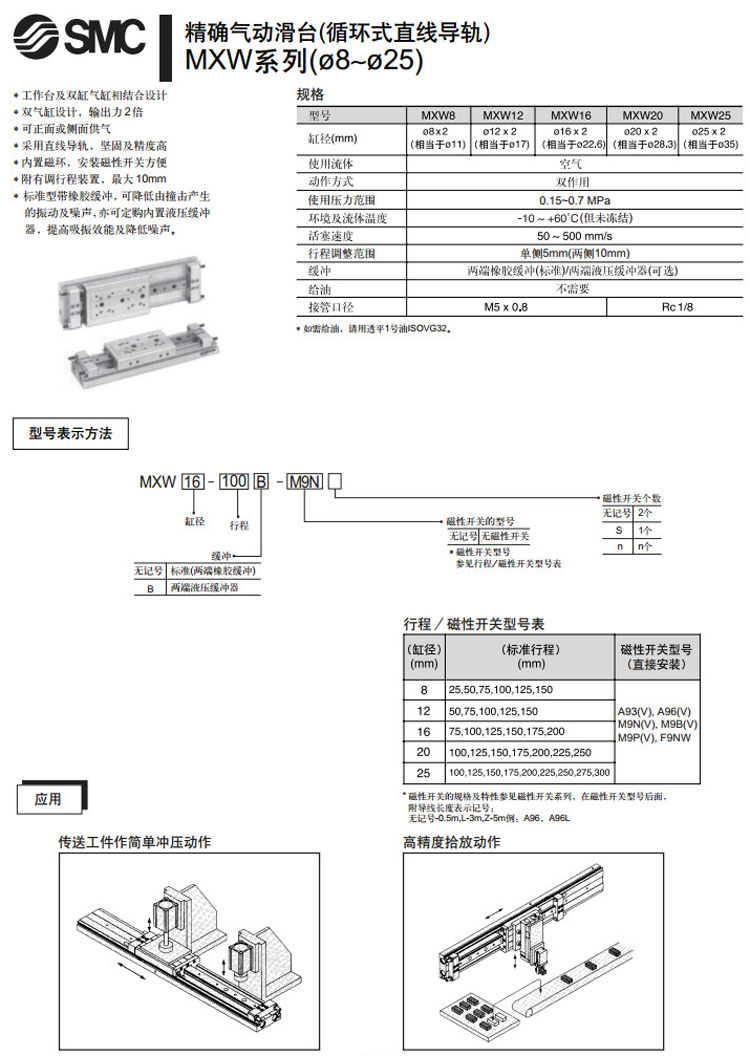 MXW8-25,MXW12-50,MXW16-75,MXW20-100,MXW25-100,MXW8-50,MXW12-75,MXW16-100,SMC氣動滑臺氣缸