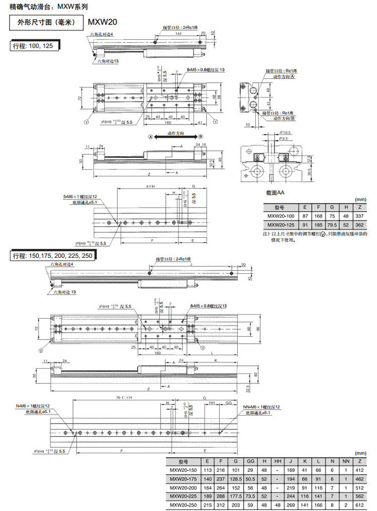MXW16-200,MXW20-125,MXW20-150,MXW20-175,MXW20-200,MXW20-225,MXW20-250,MXW25-125,MXW25-150,