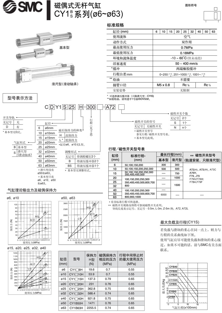 CY1B6H-50,CY1B10H-50,CY1B50H-50,CY1B63H-50,CY1B50L-50,CY1B63L-50,SMC磁偶式無桿氣缸