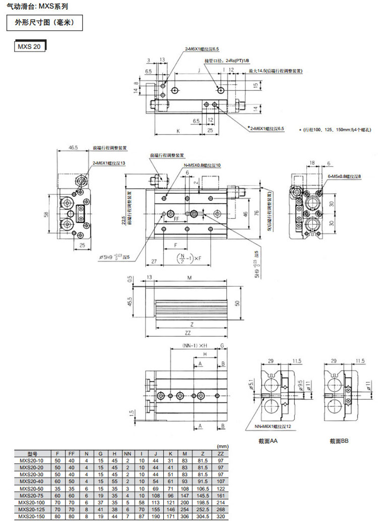 MXS6-10,MXS8-10,MXS12-10,MXS16-10,MXS20-10,MXS25-10,MXS6-20,MXS8-20,MXS12-20,SMC氣動滑臺氣缸