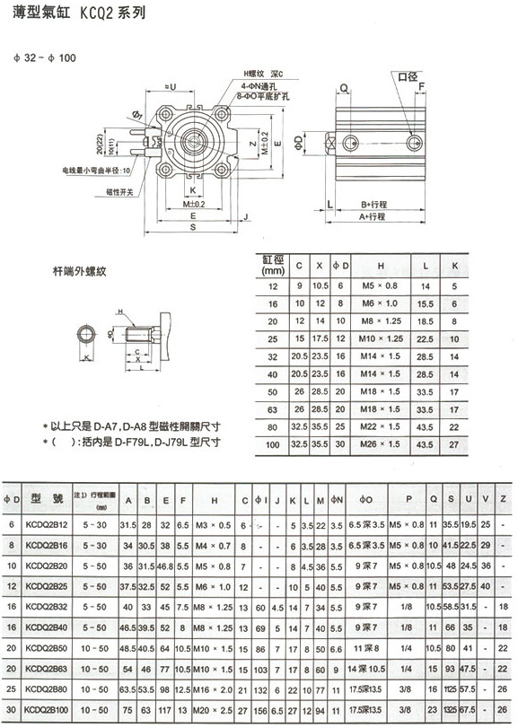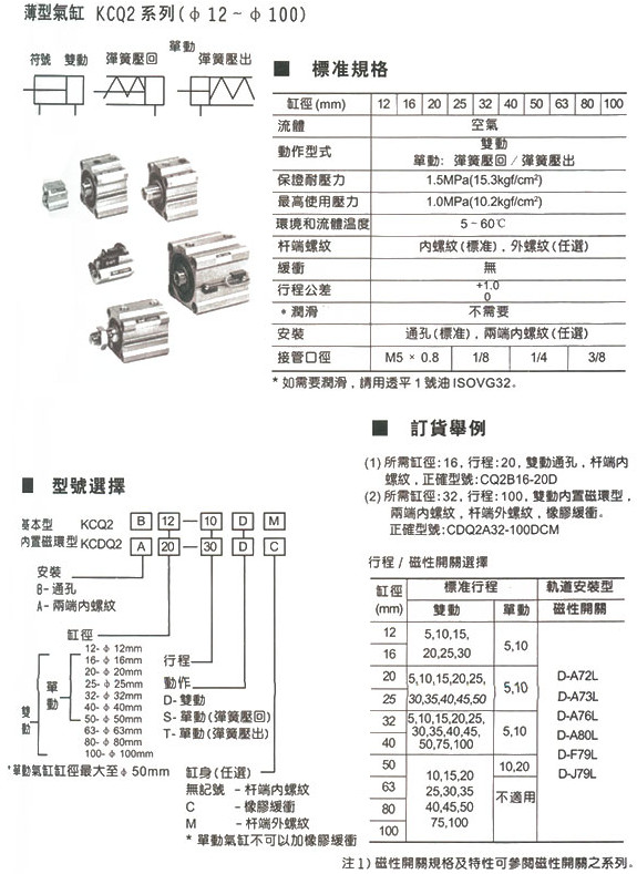 KCQ2B12,KCQ2B20,KCQ2B32,KCDQ2A16,KCDQ2A40,KCDQ2A63,薄型氣缸