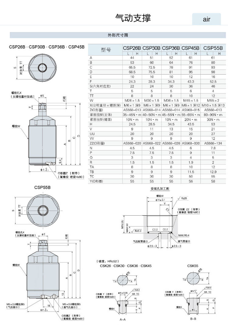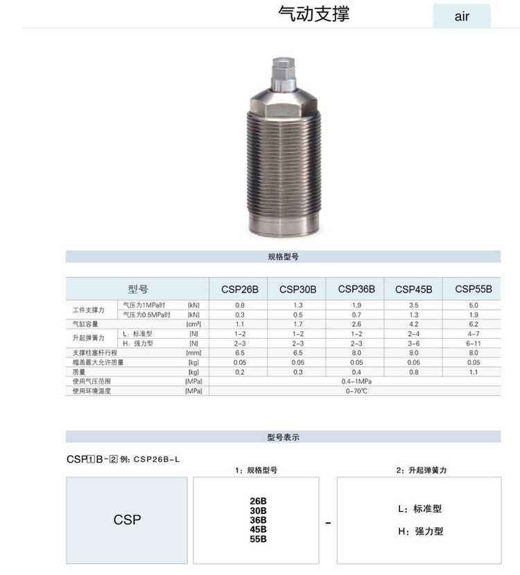 CSP26B,CSP30B,CSP36B,CSP45B,CSP55B,氣動(dòng)支撐缸