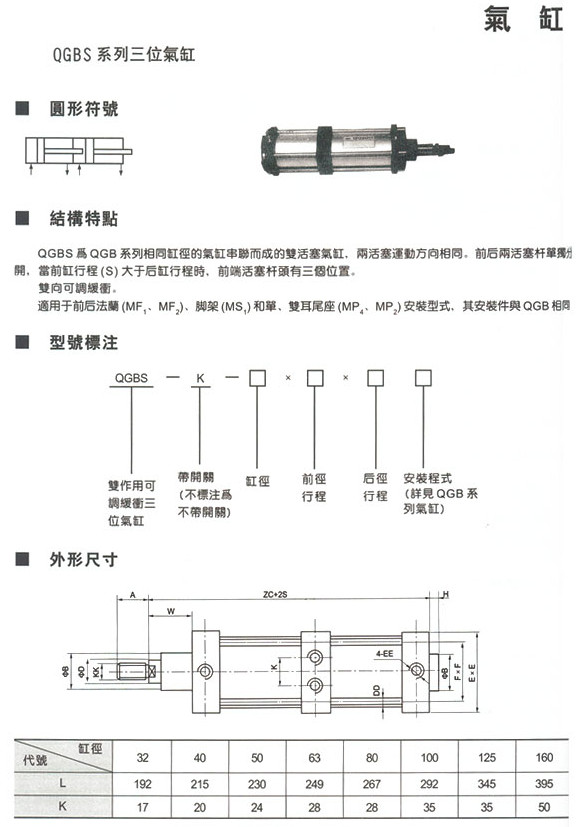 QGBS-K-32,QGBS-K-40,QGBS-K-50,QGBS-K-63,QGBS-K-80,三位氣缸