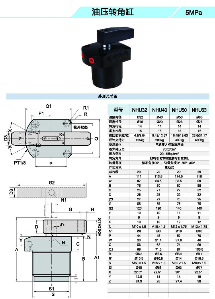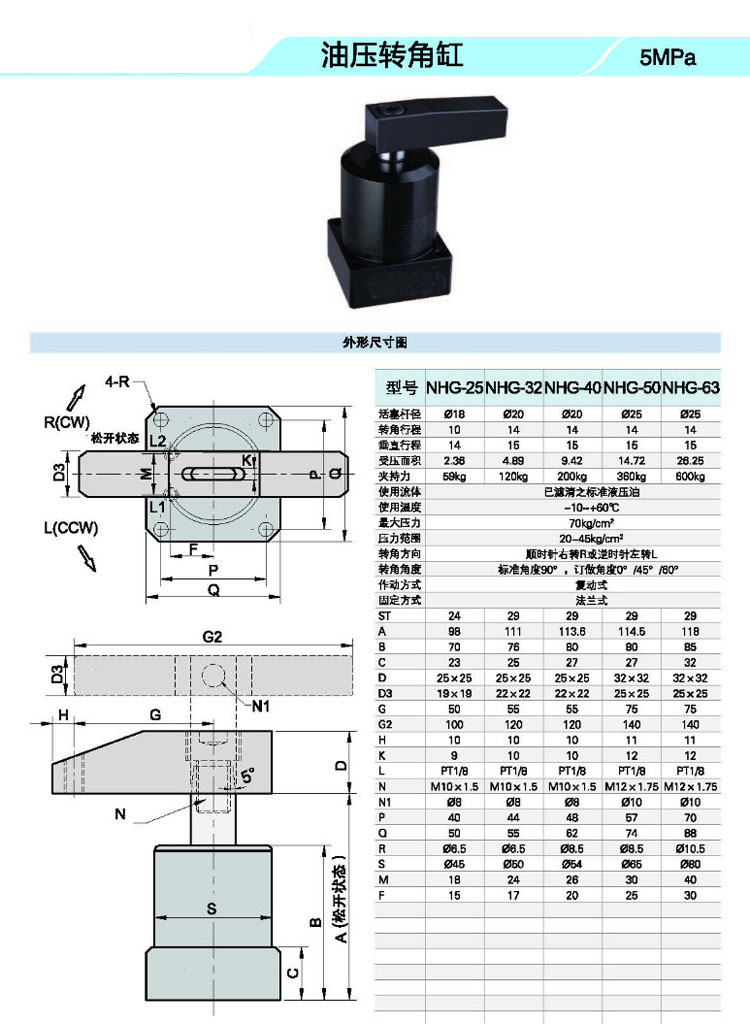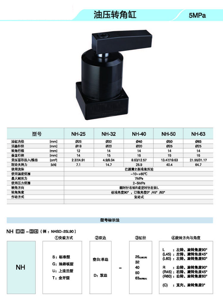 NHS,NHU,NHSD,NHUD,NHS-25,NHU-32,NHSD-25,NHUD-32,NHG-63,NHGD-63,油壓轉角缸 |