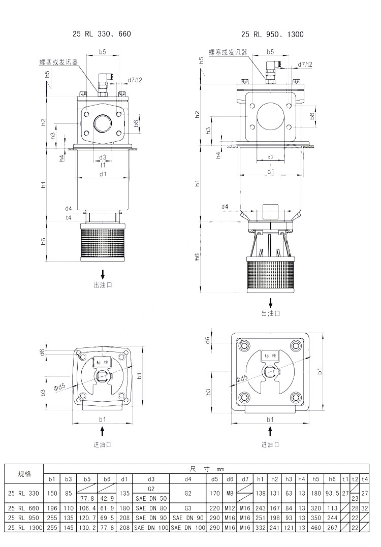 25RL30,25RL60,25RL110,25RL160,25RL240,25RL330,25RL660,25RL950,25RL1300,25RL1300KN3FAB20PD,單筒回油過濾器 |