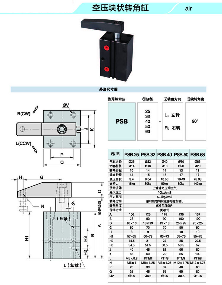 PSB25-L90,PSB32-L90,PSB40-L90,PSB50-L90,PSB63-L90,PSB25-R90,PSB32-R90,PSB40-R90,空壓感應(yīng)式轉(zhuǎn)角缸 |
