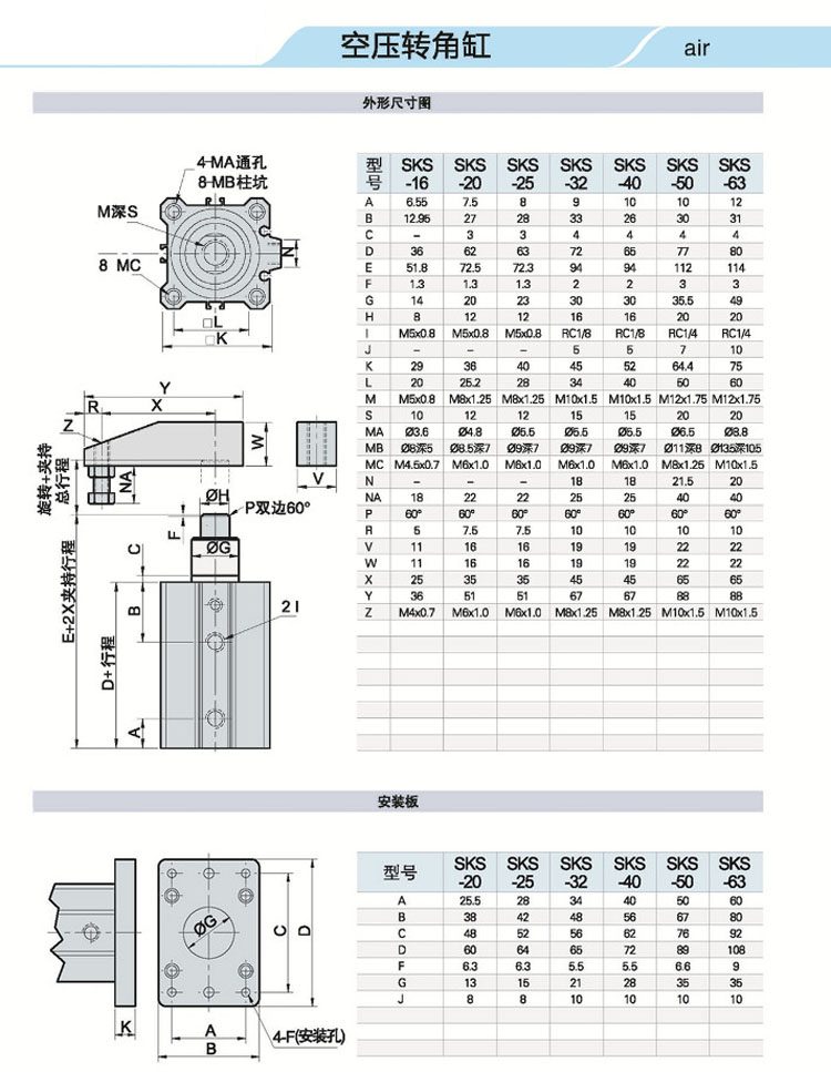 SKS16,SKS20,SKS25,SKS32,SKS40,SKS50,SKS63,SKS16-10L90,SKS63-50L90,感應(yīng)式轉(zhuǎn)角缸