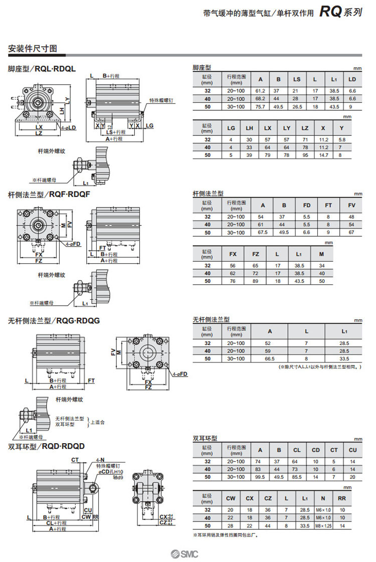 RQB20,RQL20,RQF20,RQG20,RQD20,RQA32,RDQB20,RDQL20,RDQF20,RDQG20,RDQD20,RDQA32,SMC薄型氣缸