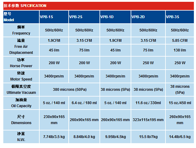 VPB-1S,VPB-2S,VPB-1D,VPB-2D,VPB-3S,單級(jí)真空泵