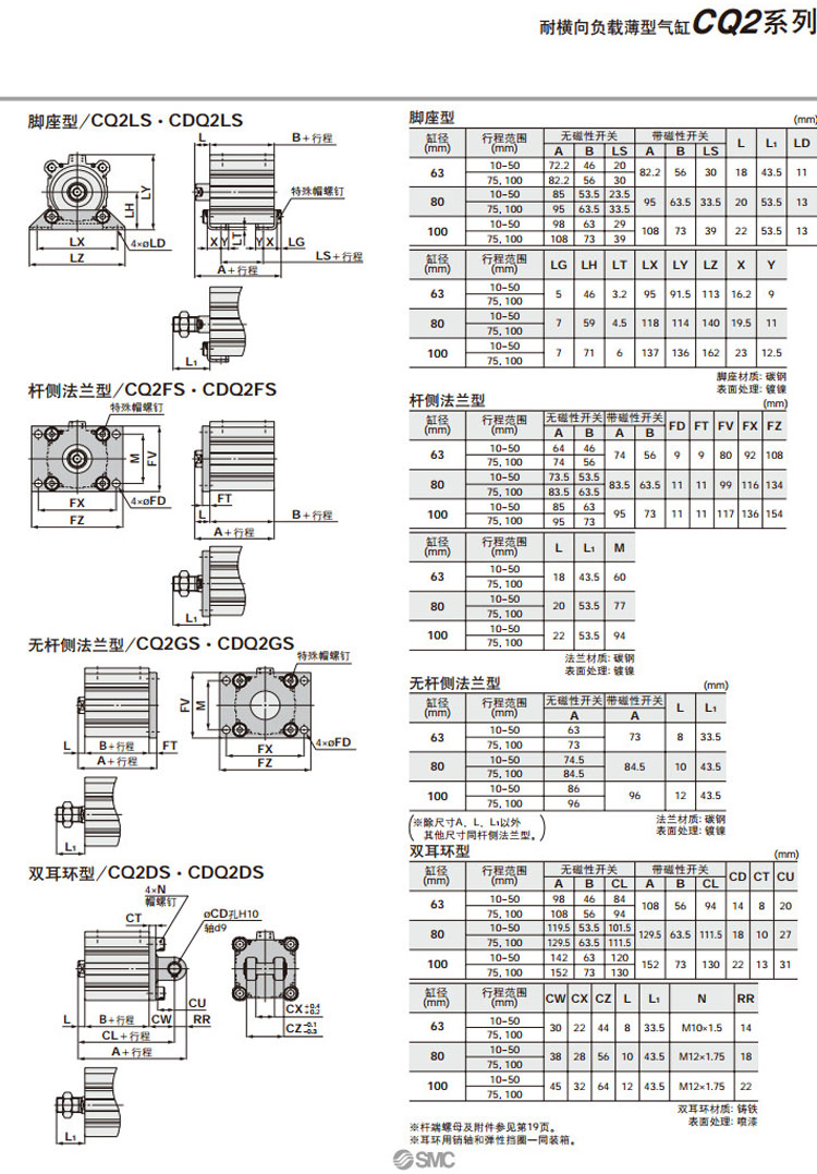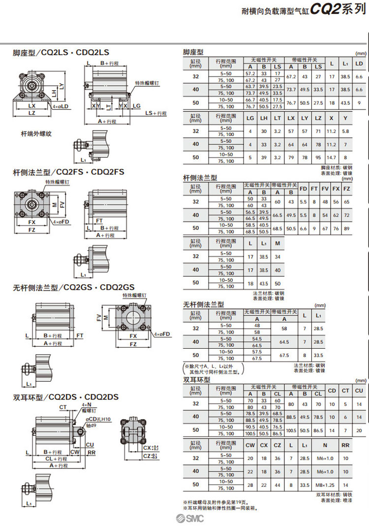 CQ2BS32,CQ2BS40,CQ2BS50,CQ2BS63,CQ2BS80,CQ2BS100,CDQ2BS32,CDQ2BS40,CDQ2BS50,CDQ2BS63,CDQ2BS80,CDQ2BS100,SMC薄型氣缸