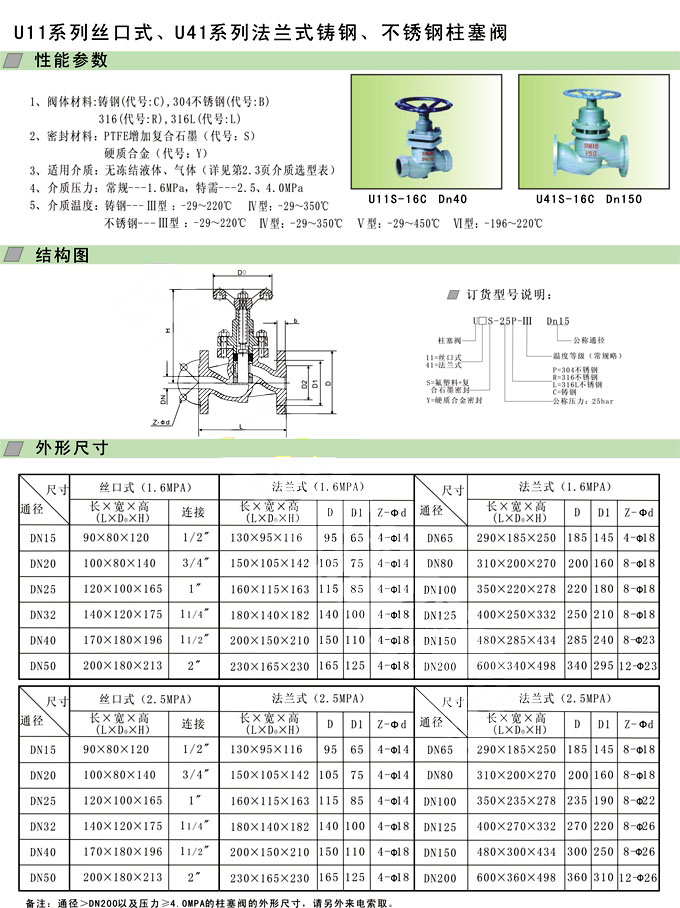 U11S-16L-III-DN25,U11S-25L-III-DN25,U41S-16L-III-DN25,U41S-25L-III-DN25,柱塞閥