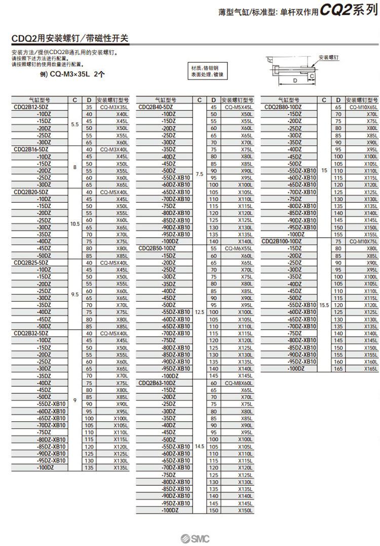 CQ2B20-50,CQ2B25-50,CQ2B32-50,CQ2B40-50,CQ2B50-50,CQ2B63-50,CQ2B80-50,CQ2B100-50,CQ2B32-100,CQ2B40-100,