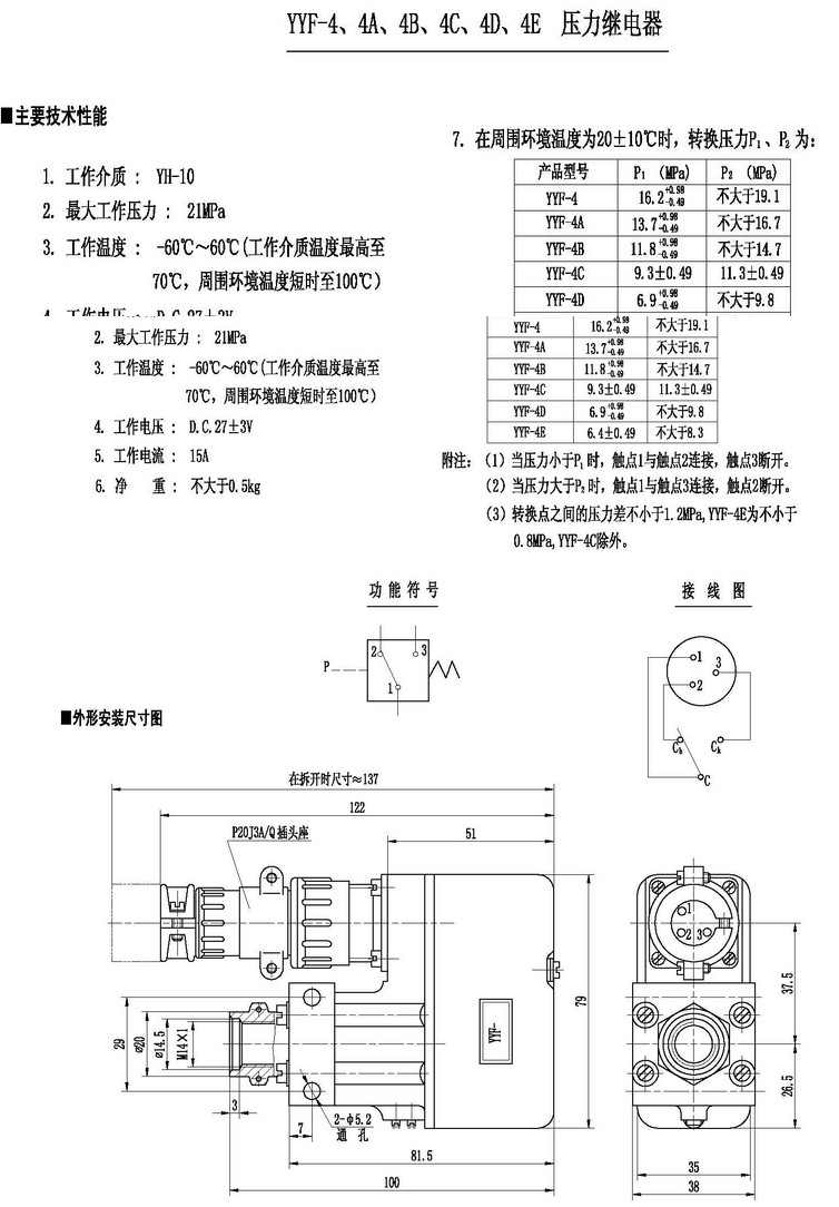 YYF-4,YYF-4A,YYF-4B,YYF-4C,YYF-4D,YYF-4E,壓力繼電器