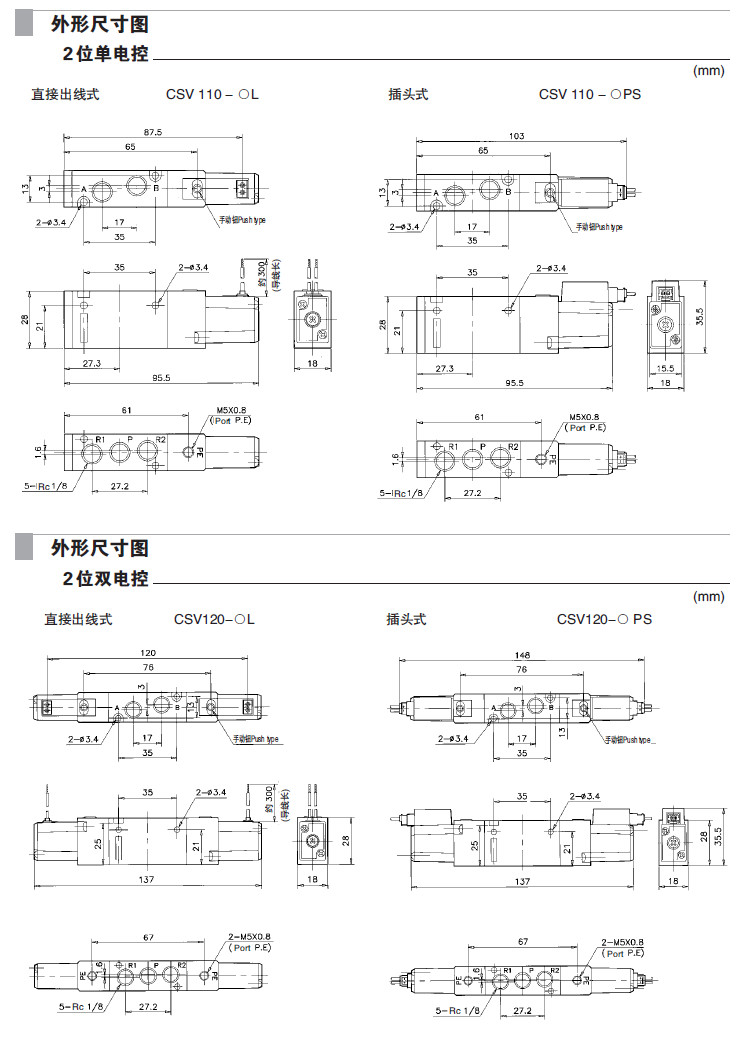 CSV110-1L,CSV120-2L,CSV130-4L,CSV140-1PS,CSV150-2PS,CSV110-4PS,5通先導(dǎo)式電磁閥