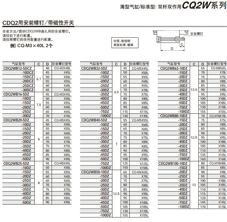 CDQ2WB50-100,CDQ2WB63-100,CDQ2WB80-100,CDQ2WB100-100,CDQ2WL32-100,CDQ2WL40-100,CDQ2WL50-100,CDQ2WL63-100,