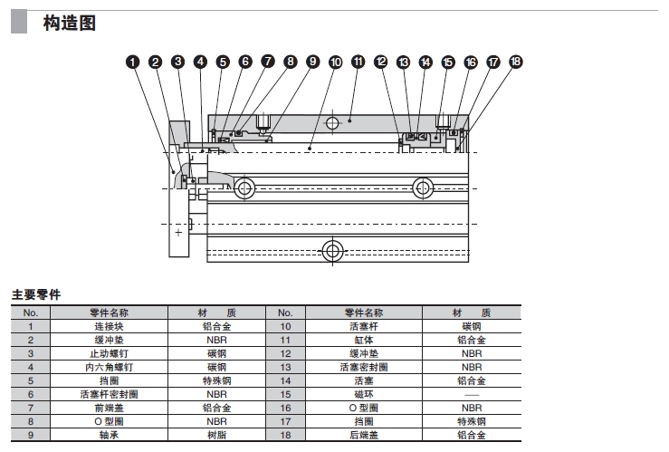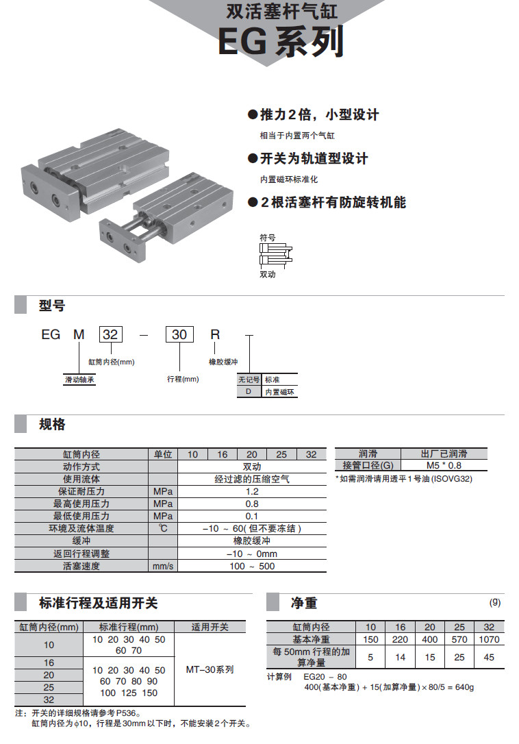 EGM10-10R,EGM16-10R,EGM20-10R,EGM25-10R,EGM32-10R,雙活塞桿氣缸