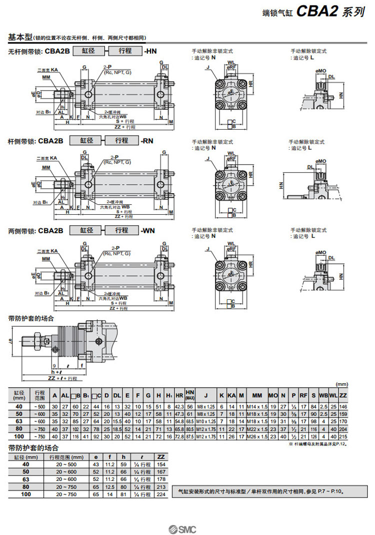 CBA2L80-700,CBA2L100-700,CBA2F80-700,CBA2F100-700,CBA2G80-700,CBA2G100-700,CBA2C80-700,CBA2C100-700,SMC端鎖氣缸