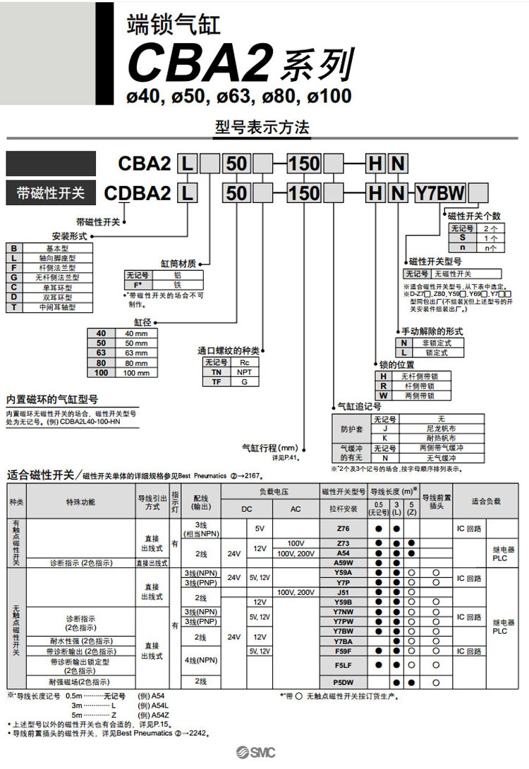 CBA2B40-25,CBA2L40-25,CBA2F40-25,CBA2G40-25,CBA2C40-25,CBA2D40-25,CBA2T40-25,SMC端鎖氣缸