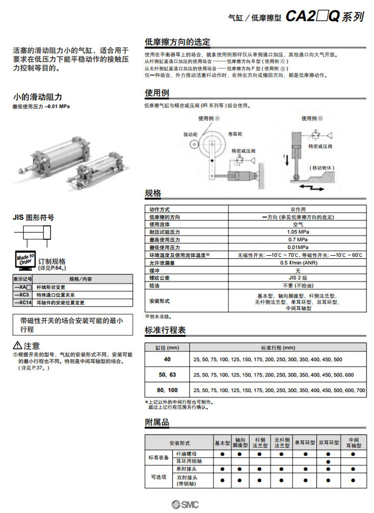 CA2LQ80-700,CA2LQ100-700,CA2FQ80-700,CA2FQ100-700,CA2GQ80-700,CA2GQ100-700,CA2CQ80-700,CA2CQ100-700,SMC低摩擦型氣缸