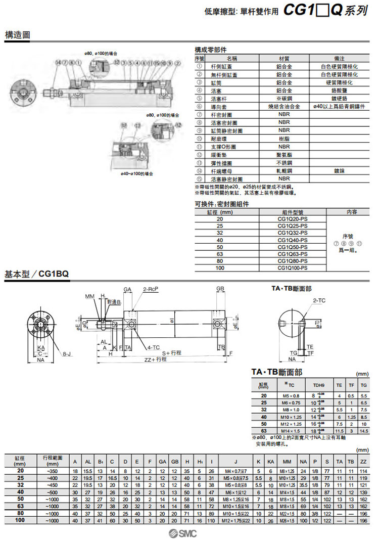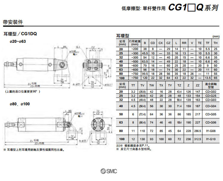 CDG1BQ100-300,CDG1LQ100-300,CDG1FQ100-300,CDG1GQ100-300,CDG1DQ100-300,SMC低摩擦型氣缸