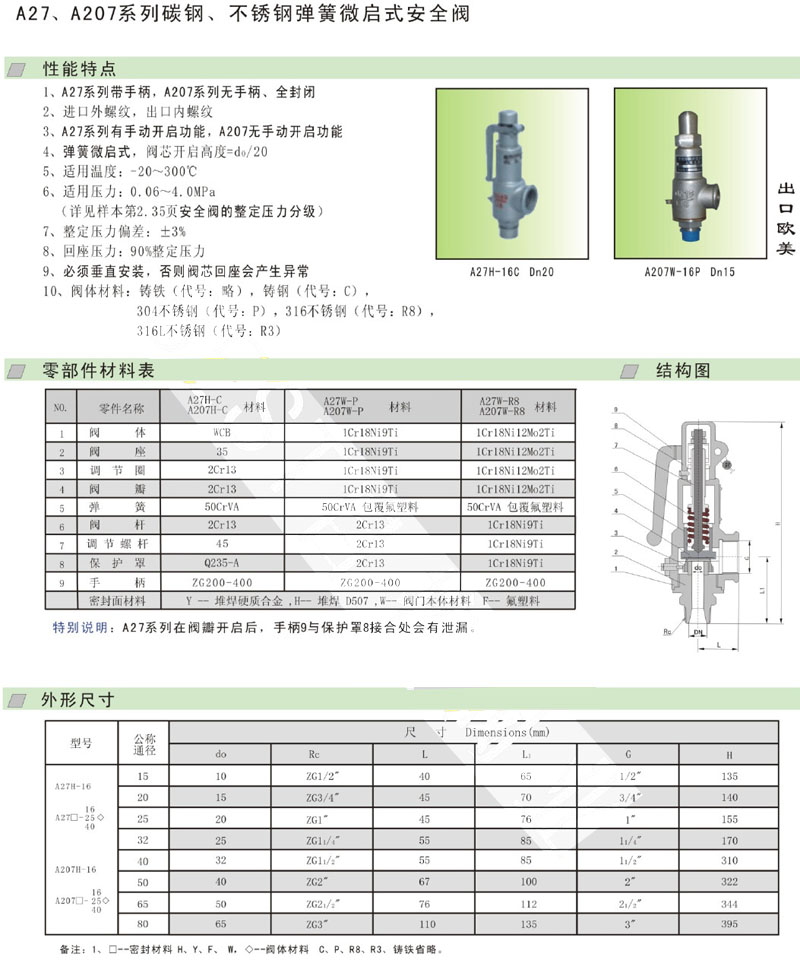 A207W-16C-DN15,A207W-16C-DN20,A207W-16C-DN25,A207W-16C-DN32安全閥 |