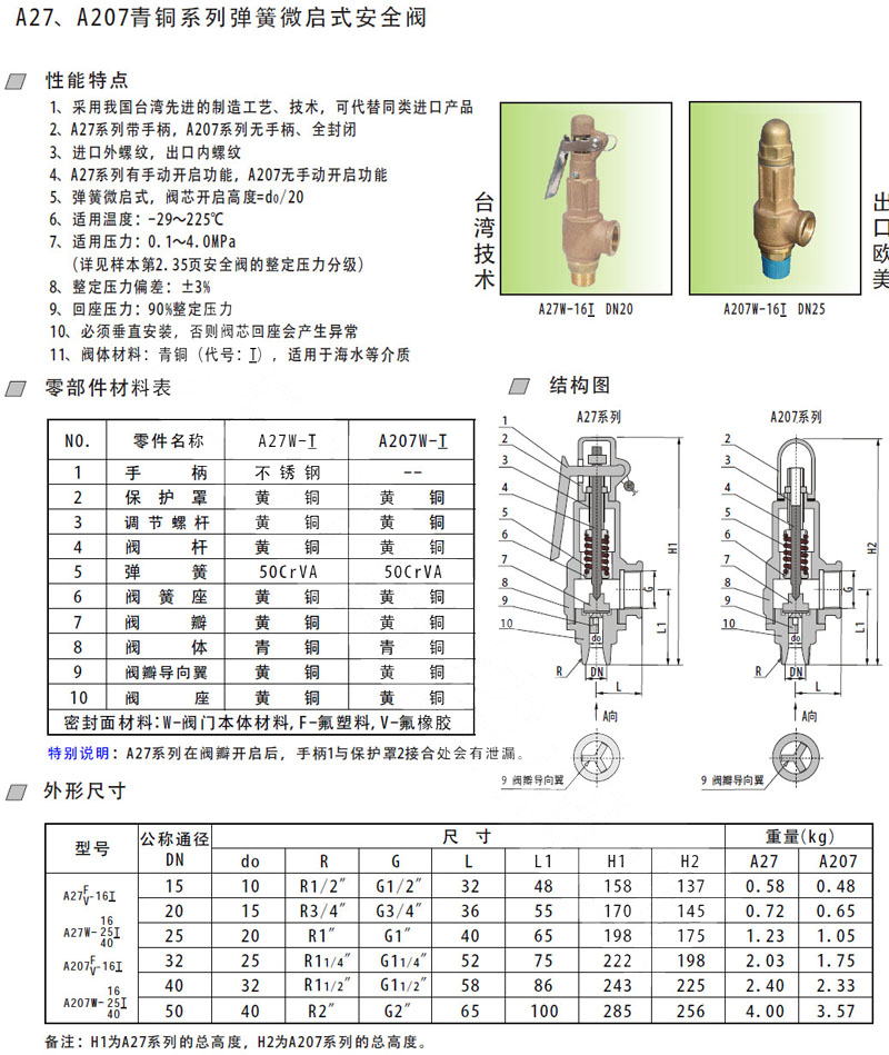 A27F-16,A27V-16,A27W-25,A207F-16,A207W-25,A207W-40,微啟式安全閥