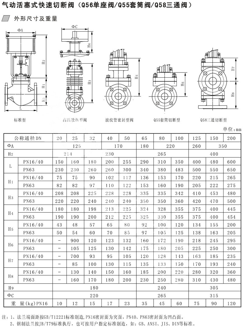 Q56-16C,Q56-63C,Q55-40C,Q55-63C,Q58-16C,Q58-40C,氣動活塞式快速切斷閥