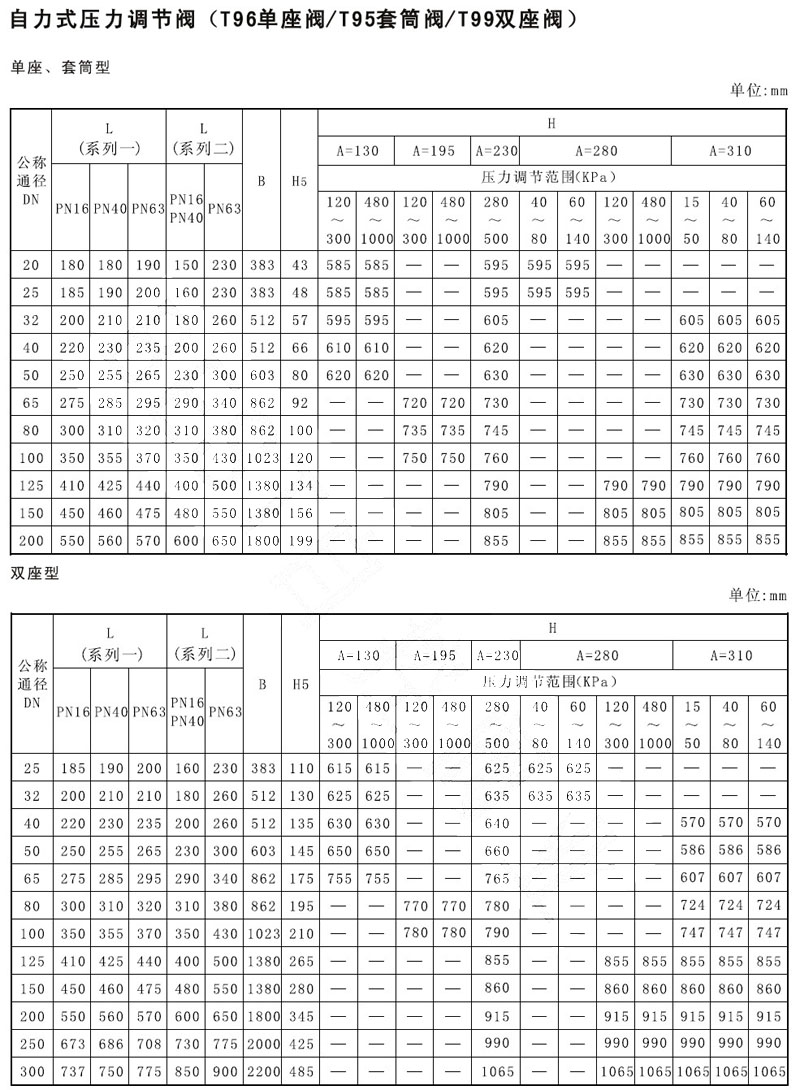 T96-16C,T96-40C,T95-16C,T95-63C,T99-16C,T99-40C,自力式壓力調(diào)節(jié)閥