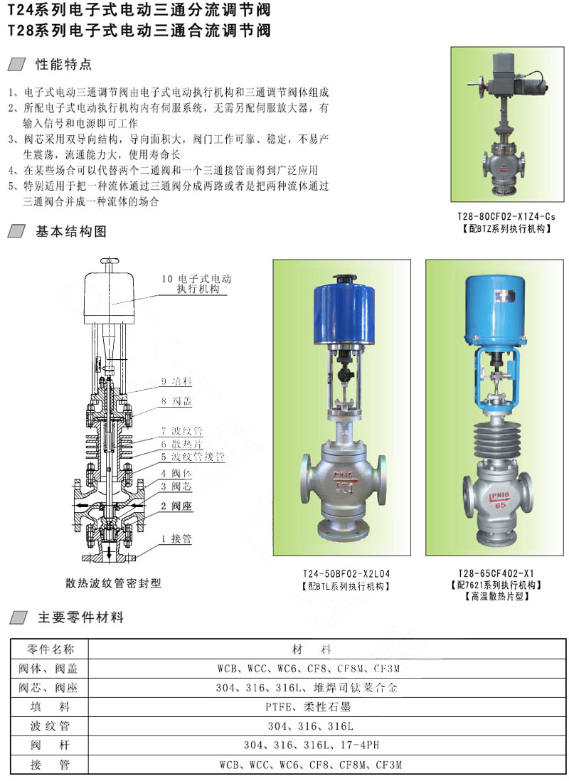 T24-16C,T24-40C,T24-63C,T24-100C,T28-16C,T28-40C,T28-63C,電子式電動三通分流調(diào)節(jié)閥 |
