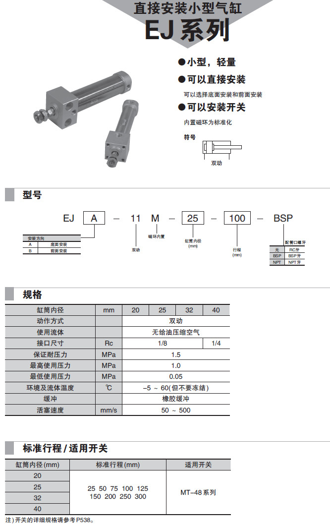 EJA-11M-20,EJA-11M-32,EJA-11M-40,EJB-11M-25,EJB-11M-32,EJB-11M-40,小型氣缸